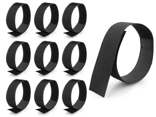 Zestaw opasek rzepowych do siatek 3x35cm - kolor czarny / 10 szt.